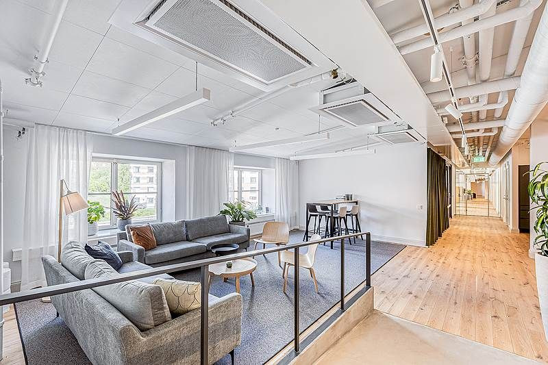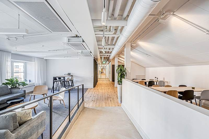 Kontoret går i ljusa färger med smakfulla och moderna ytskikt, väldigt gott inomhusklimat med ny ventilation med komfortkyla.
