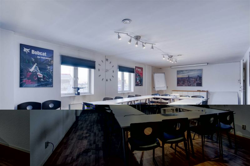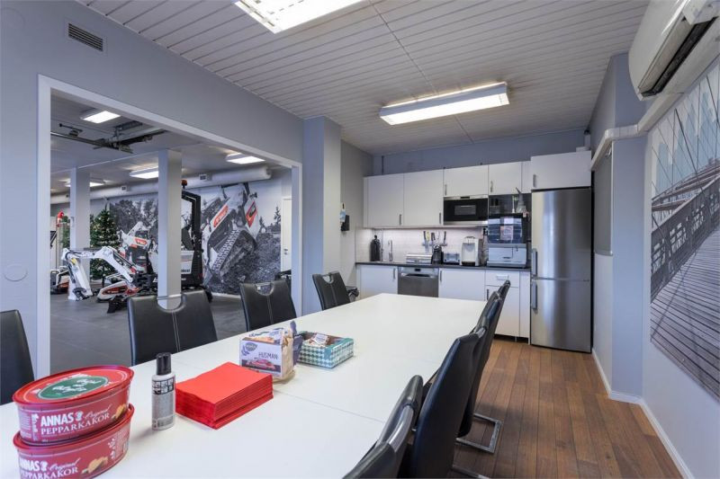 Större öppen yta med plats för utställning, kontor samt mötesrum för kunder med fin pentrydel.