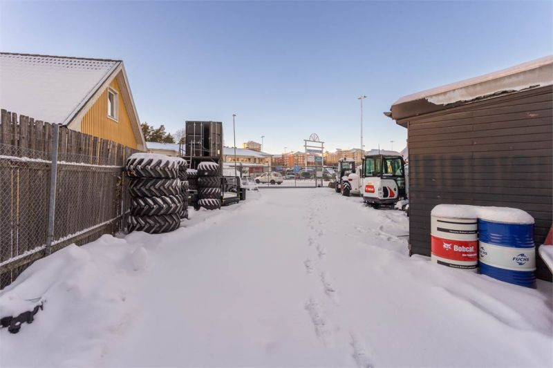 Här erbjuds en egen fastighet i två plan, gott om uppställningsyta och parkeringar samt inhägnat område ca 600kvm.