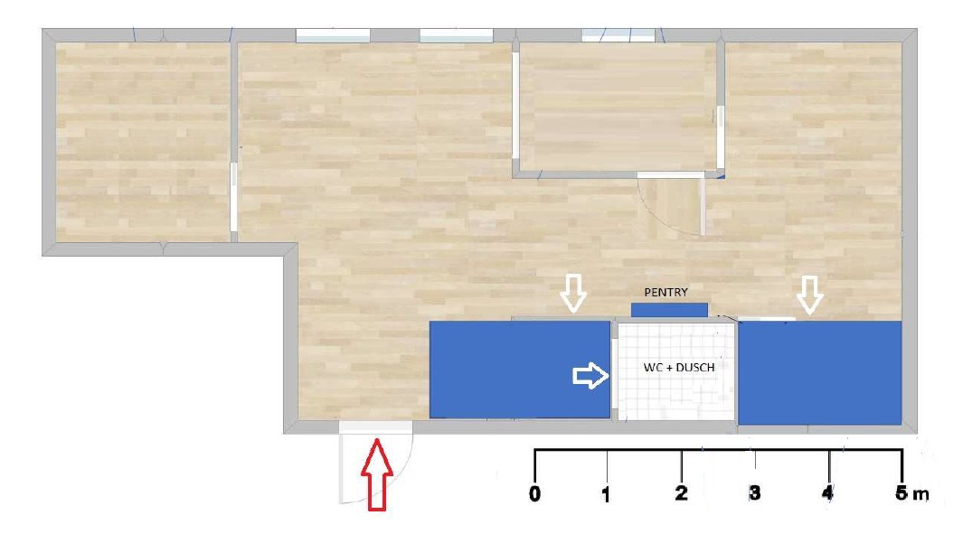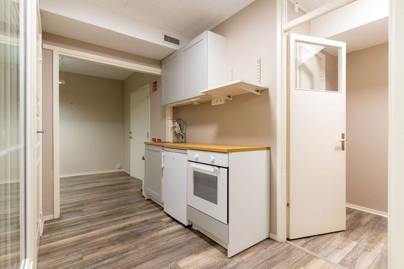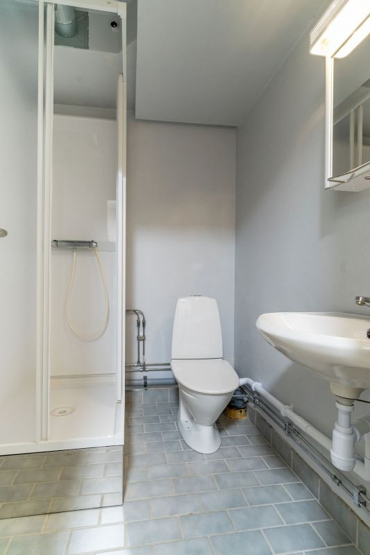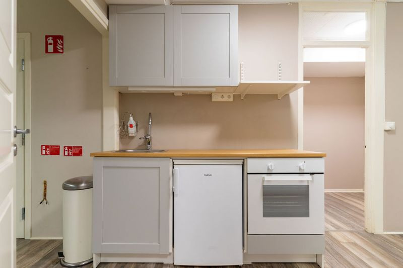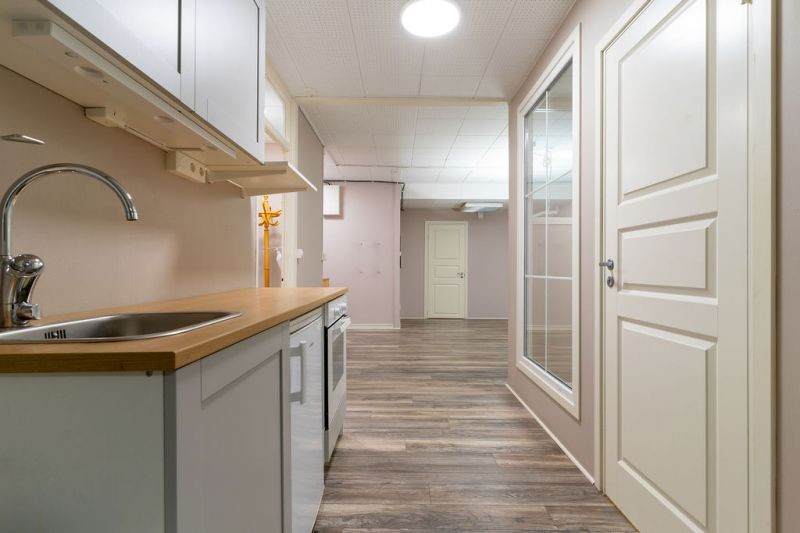 Lokalen har fräscha ytskikt vilka utgörs av målade väggar, ett fint parkettgolv samt grått klinkergolv i wc. Hyresvärden har nyligen dragit om elen i lokalen..